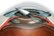 Хірург вводить в око крихітний порожнистий інструмент, який за допомогою високочастотних вібрацій (ультразвуку) «розбиває» помутнілий кришталик ока та виводить його назовні.